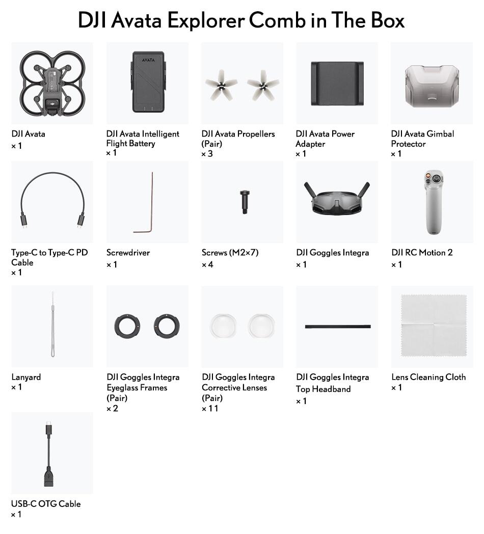 DJI Avata Pro-View Combo: Includes DJI 2 and DJI Motion Controller, which can realize intuitive control by hand and head movements to provide an immersive sensory experience with flexibility and ease.