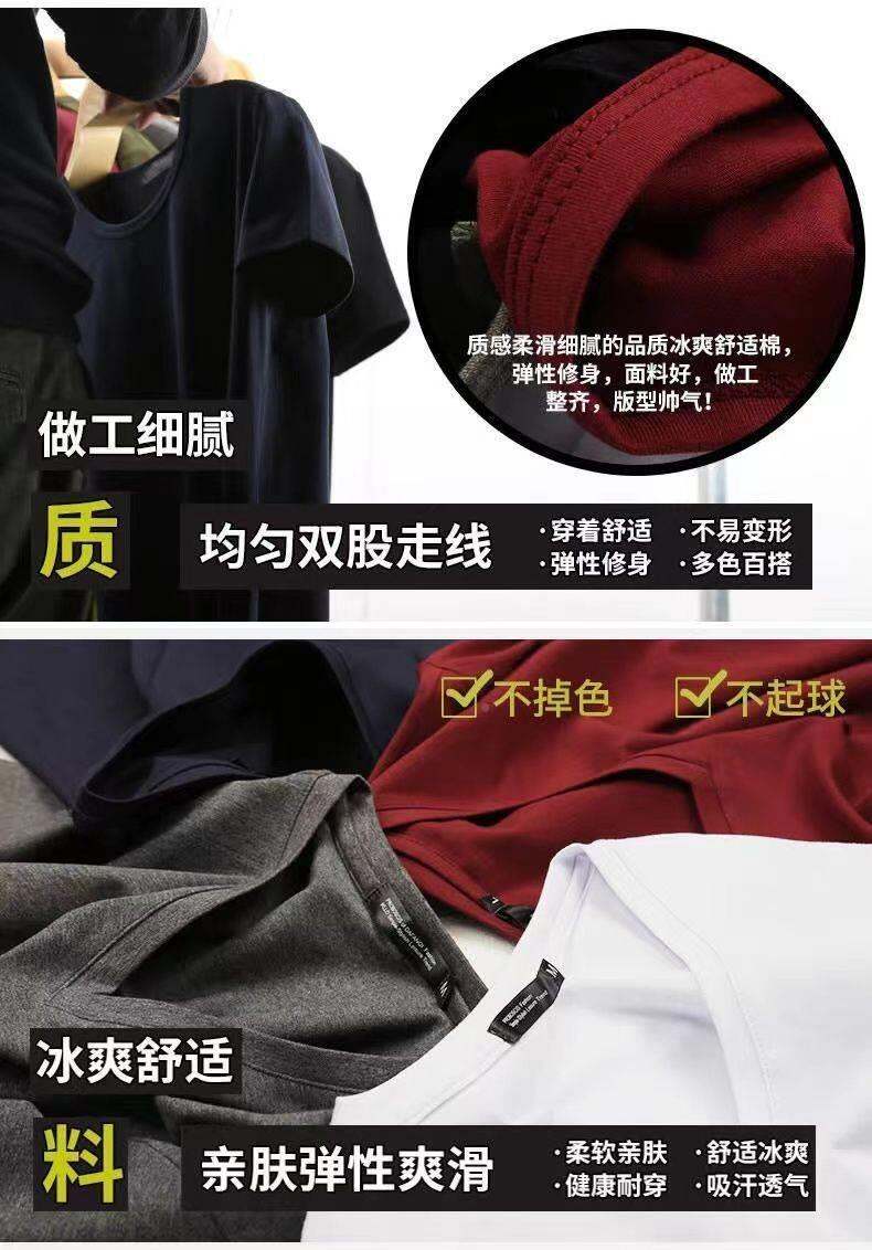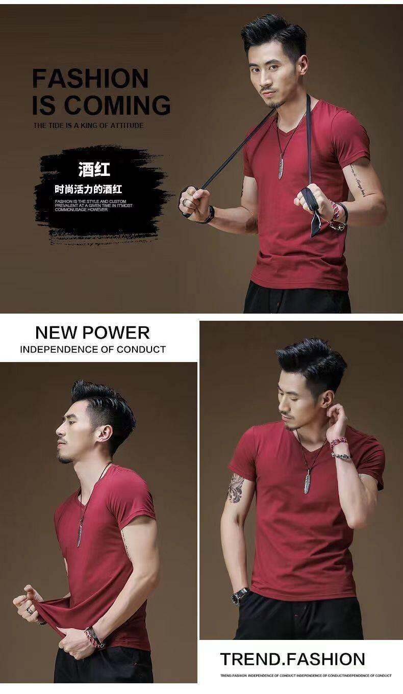 3vyy phong cách mới thời trang ngắn tay rắn màu người đàn ông V-Neck nửa đồ lót lót áo thun cơ thể tay áo lụa cơ thể sửa chữa T-shirt 1/