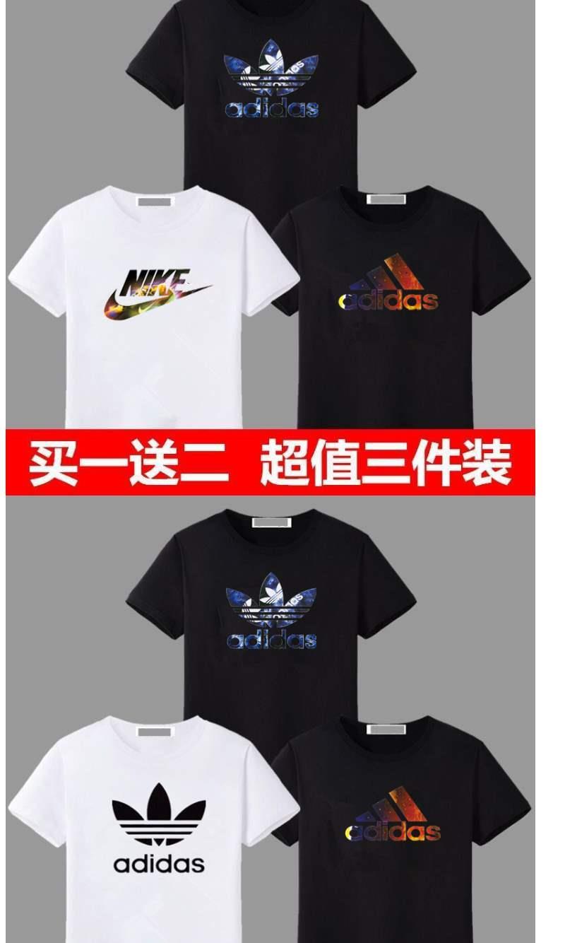 (Buy one, get two free) Super value all-match fashion T shirt all-match round neck Korean version loose large print half sleeve shirt