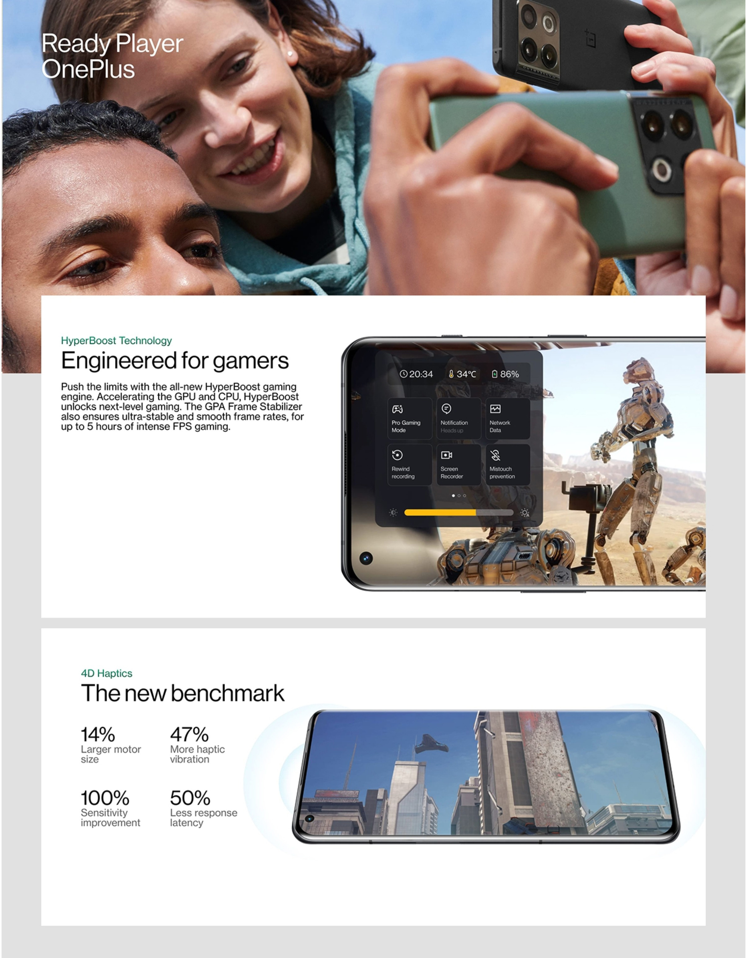 The OnePlus 10 Pro boasts the second-generation Hasselblad Camera for Mobile, the fastest performance in any OnePlus smartphone to date, and a 120 Hz display with improved LTPO technology and Dual Color Calibration. In addition, the device totes an array of new gaming features made possible by the HyperBoost Gaming Engine and sports a brand-new design that continues OnePlus’ tradition of offering products that are burdenless and stylish.